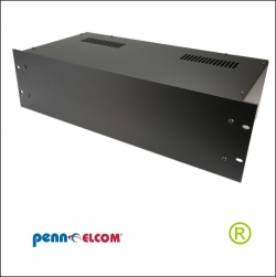 Penn Elcom 19 inch kast 3 eenheden hoog 13.5 cm en 22 cm diep.De voorplaat is gemaakt van 3 millimeter aluminium en gemonteerd met 4 zwarte lage bolkop schroeven.
