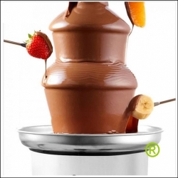 Zorg voor feest aan tafel. Vooral kinderen zullen genieten met deze chocoladefontein. De motor en de thermostaat zijn apart te bedienen en bovendien beschikt de chocoladefontein over een warmhoud functie. De fontein heeft 3 etages en is voor 900 gram chocolade, die het beste eerst vloeibaar gemaakt kan worden in de magnetron. een vulling van 900 gram is geschikt tot 50 personen.