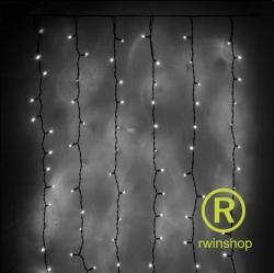 Dit lichtgordijn heeft een zwarte kabel, ook is er een wiite kabel verkrijgbaar en andere lengten zoals 3, 6 en 10 meter hoogte.